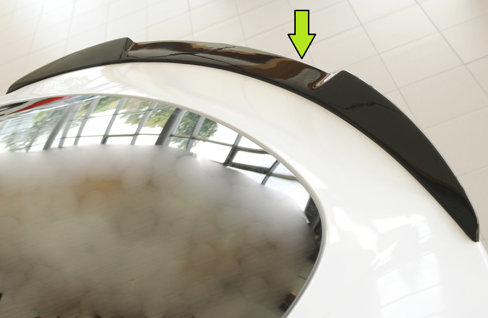 Hinweis: Die Verklebung von diesem Heckklappenspoiler erfolgt mit haftstarker Klebemasse. Dazu muss der Lack der Heckklappe im Bereich der Klebefläche leicht angeschliffen und mit Haftgrund behandelt werden. Eine rückstandslose Demontage des verklebten Heckklappenspoilers ist deshalb später nicht möglich. _x000D_