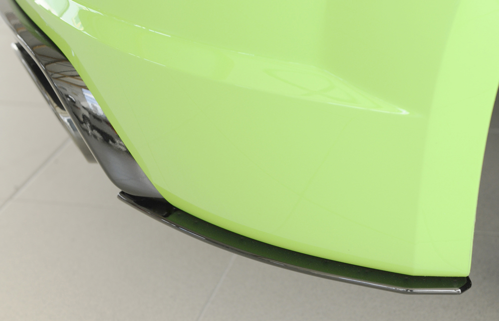 Gegen Aufpreis ist dieser Heckschürzenansatz auch bereits in der Farbe Schwarz-glänzend lieferbar. Art-Nr. für Lackierung: 00510174 (= gültig für 2 Stück)._x000D_