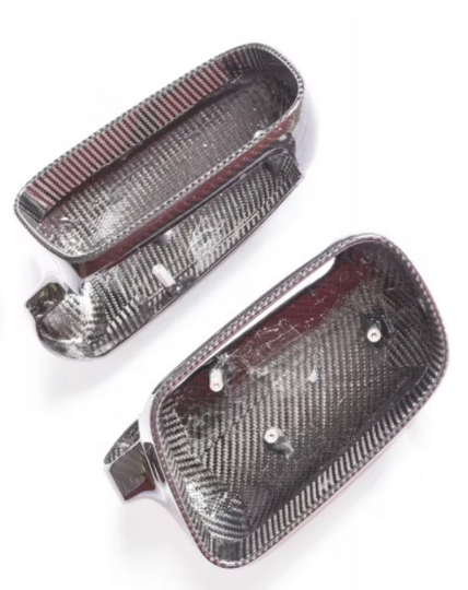 Die Spiegelkappen bestehen aus 100 % echtem Carbon und sind mit mehreren Schichten UV-beständigem Klarlack versiegelt. Anschließend werden sie hochglanzpoliert, wodurch eine besonders edle und sportliche Oberfläche entsteht.