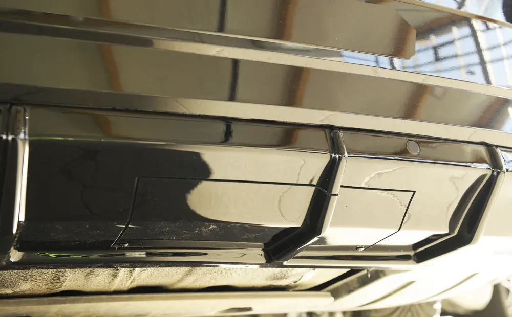 Bei der Version „Sportline“ sind zu dieser Auspuffvariante „ohne Endrohrblende“ auf dem orig. Heckeinsatz verchromte Zierleisten aufgesetzt, die aussehen wie „angedeutete“ Endrohrblenden. Dies hat nur optische Gründe, aber keine Wirkung auf den Abgasstrom._x000D_