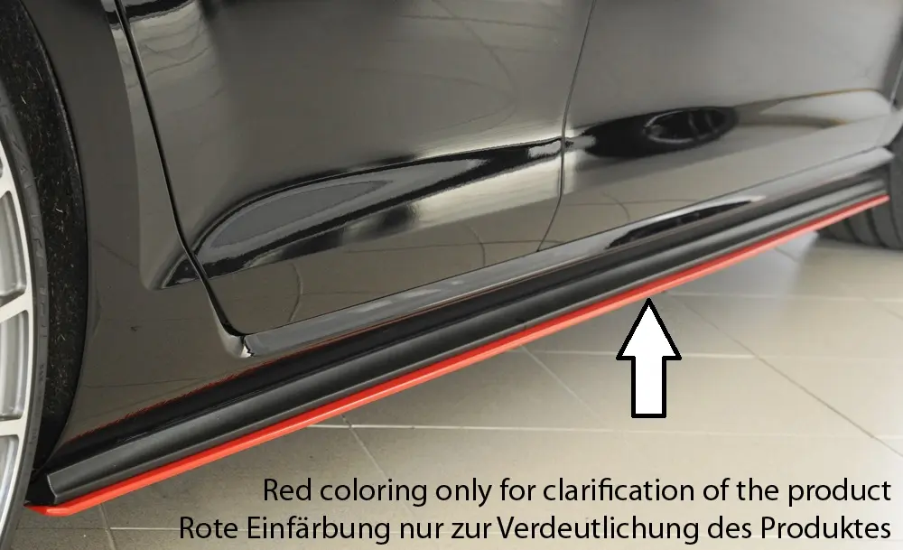 Gegen Aufpreis ist dieser Seitenschwelleransatz auch bereits in der Farbe Schwarz-glänzend lieferbar. Art-Nr. für Lackierung: 00510167 (= gültig für 2 Stück).